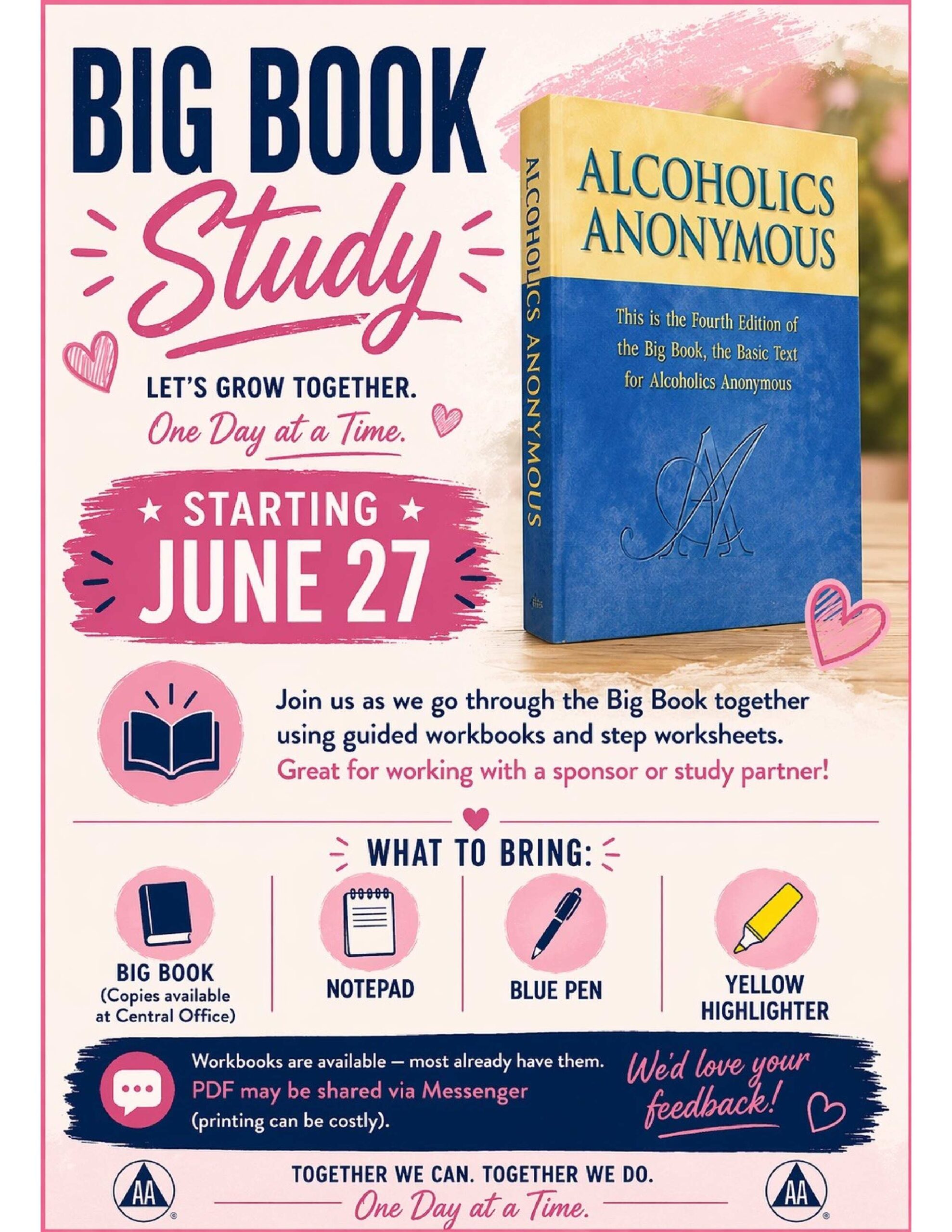Need to make a meeting change? List a new meeting or register as a trusted servant? Or maybe you need to get a special message out to the rest of our fellowship? Each of these actions help our local fellowship stay connected with you and your group!